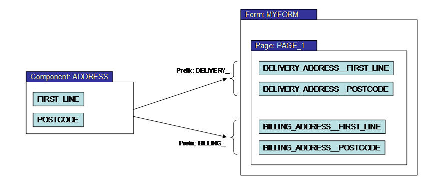 PAGE_1 of the MYFORM form, once with a prefix of DELIVERY_ and once with a prefix