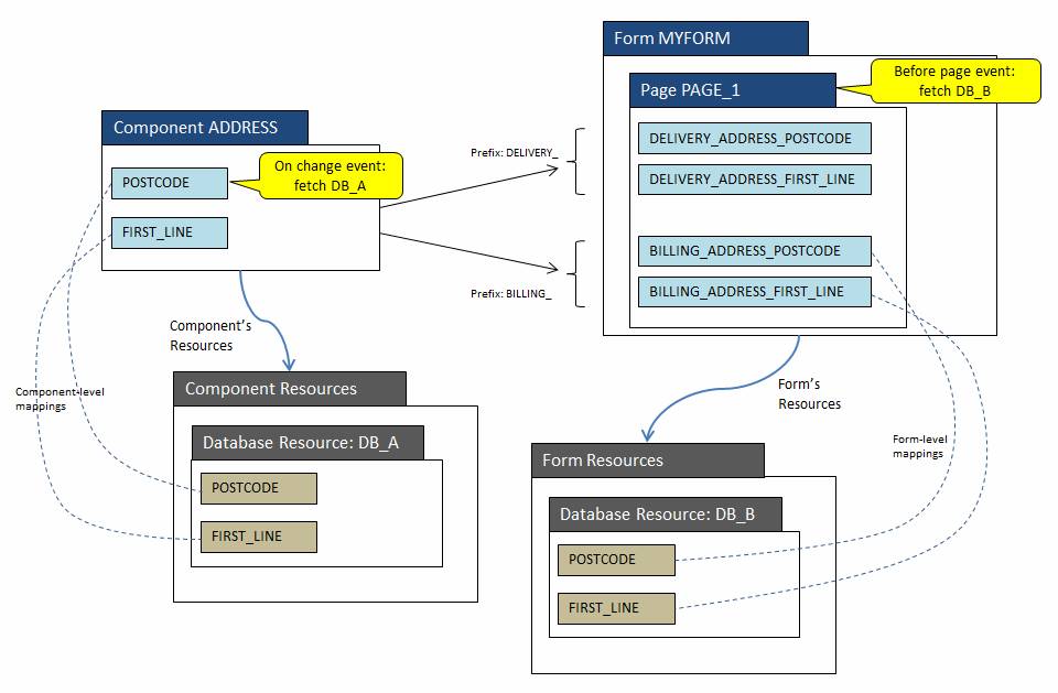 resource DB_A which has 2 fields POSTCODE and FIRST_LINE. The ADDRESS component’s